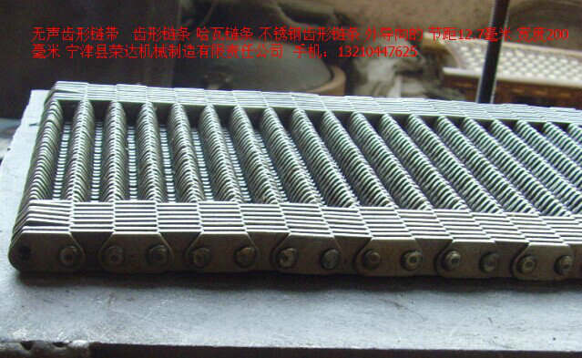 寧津縣榮達機械制造有限責任公司銷售無聲齒形鏈條,無聲齒形鏈帶,配套與美國EMHART和意大利BOTTERO行列式制瓶機上。用來輸送玻璃制品,玻璃瓶子,玻璃罐,玻璃容器等等。