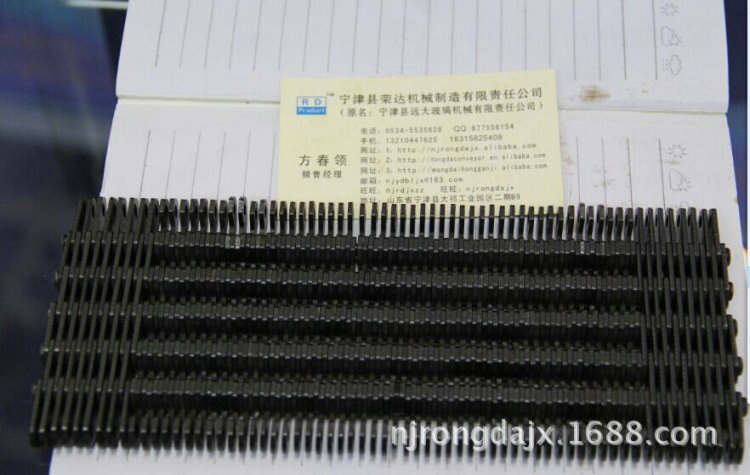 寧津縣榮達機械制造有限責任生產(chǎn)齒鏈帶已有30多年的歷史,我們每年有大量的齒鏈帶,銷往全國各地的代理商和玻璃器皿生產(chǎn)廠家,我們生產(chǎn)的齒鏈帶有碳鋼和不銹鋼的,有節(jié)距12.7mm和25.4mm的,有帶尖和不帶尖的,有帶墊圈和不帶墊圈的,有內導和外導的,有焊軸和研軸的,有各種寬度的齒鏈帶。我們生產(chǎn)的齒鏈帶,工人師傅都經(jīng)過在齒鏈式輸瓶機的24小時運轉才可以出廠。多年來我們研制出大量的齒鏈帶延伸產(chǎn)品,有橫向齒鏈式輸瓶機,雙向齒鏈式輸瓶機,轉向齒鏈式輸瓶機,U型齒鏈式輸瓶機等。我們公司不但生產(chǎn)鏈帶,無聲鏈帶,而且生產(chǎn)鏈條,無聲鏈條,希望能為國內外需要無聲鏈條和無聲鏈帶的需求者服務,提供抗拉伸耐磨的無聲鏈條和無聲鏈帶。我們生產(chǎn)的齒鏈帶延伸產(chǎn)品齒鏈帶輸瓶機有橫向齒鏈帶輸瓶機,雙向齒鏈帶輸瓶機,轉向齒鏈帶輸瓶機,轉彎U型齒鏈帶輸瓶機常年有現(xiàn)貨,隨時恭候你的考察