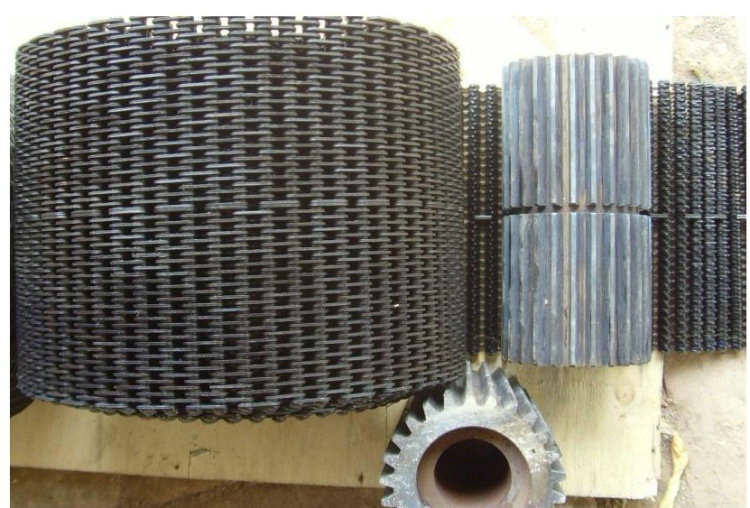 無聲齒形鏈帶:一種輸送帶,是玻璃廠或者陶瓷制品廠用來輸送玻璃制品器皿,玻璃容器或者陶瓷廠用來輸送陶瓷瓶罐,陶瓷制品的輸送帶。利用無聲鏈輪帶動,具有無噪音,耐磨,抗拉伸,輸送面平穩(wěn),耐高溫。