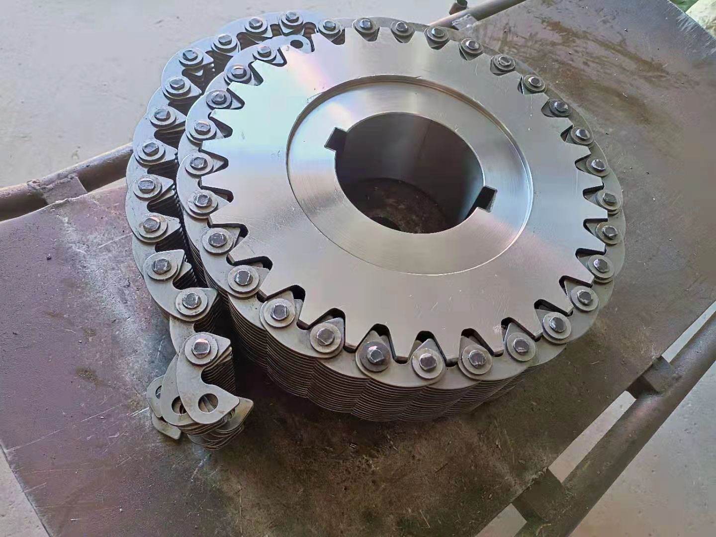 無聲鏈 齒形鏈輪 無聲鏈:也叫齒形鏈條,采用無聲齒形鏈輪帶動(dòng)運(yùn)轉(zhuǎn)傳動(dòng)。寧津縣榮達(dá)機(jī)械制造有限責(zé)任公司定做各種無聲齒形鏈條,無聲齒形鏈輪。我們根據(jù)客戶自己的情況,客戶選型成功,我們根據(jù)客戶的數(shù)據(jù)非標(biāo)定做各種齒形鏈條和無聲齒形鏈輪。齒形鏈條節(jié)距4.7625,6.35 9.525 12.7 15.875 19.05 25.4 31.75 38.1毫米的鏈條都能做,無聲齒形鏈輪根據(jù)客戶的齒數(shù)和外徑,內(nèi)孔,鍵槽定做。無聲齒形鏈條的獨(dú)特優(yōu)點(diǎn):高速,無噪音,高承載傳動(dòng)能力,轉(zhuǎn)矩大等等優(yōu)點(diǎn),逐漸取代精密滾子鏈條和同步帶。