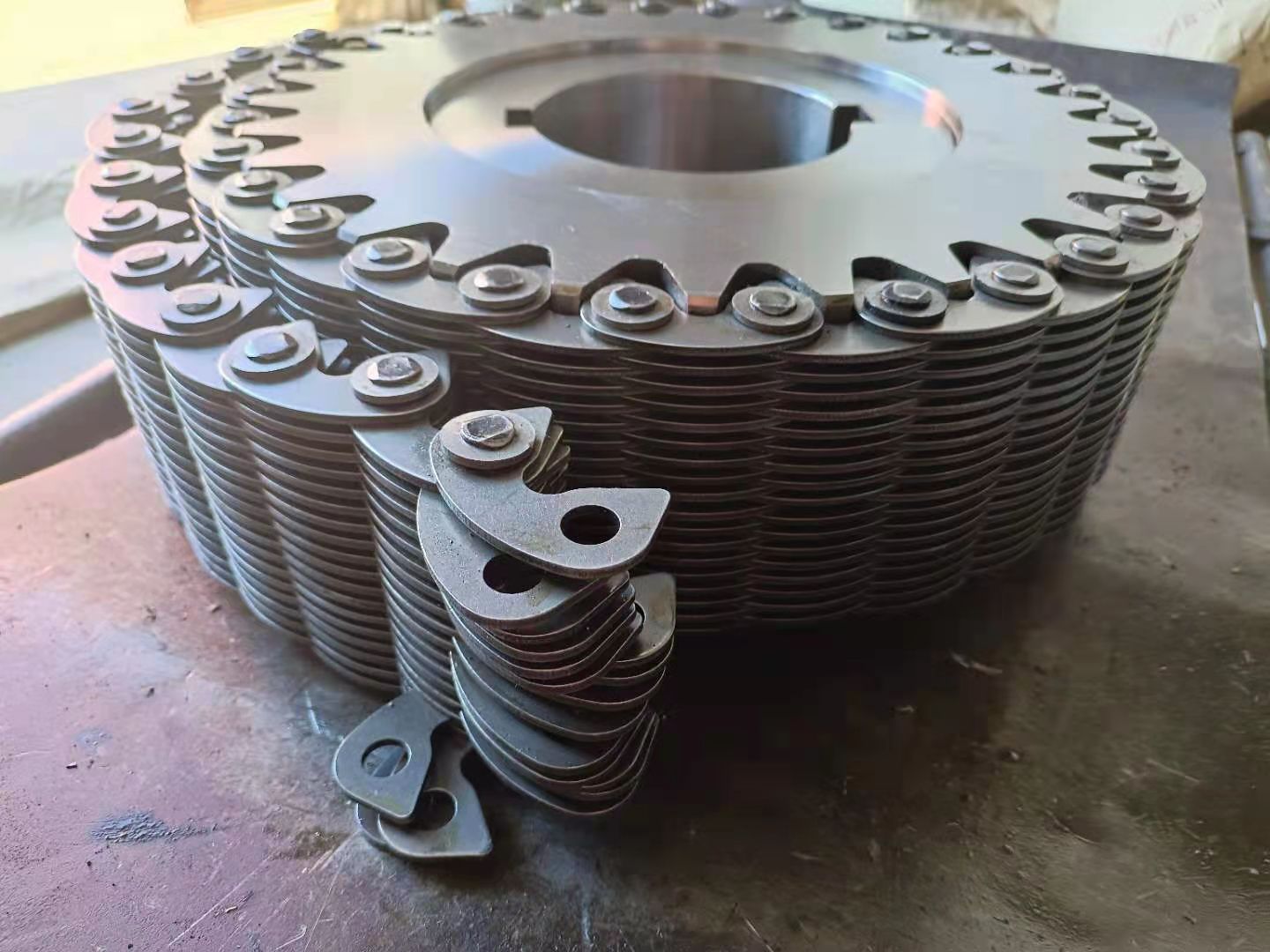無聲鏈 齒形鏈輪 無聲鏈:也叫齒形鏈條,采用無聲齒形鏈輪帶動(dòng)運(yùn)轉(zhuǎn)傳動(dòng)。寧津縣榮達(dá)機(jī)械制造有限責(zé)任公司定做各種無聲齒形鏈條,無聲齒形鏈輪。我們根據(jù)客戶自己的情況,客戶選型成功,我們根據(jù)客戶的數(shù)據(jù)非標(biāo)定做各種齒形鏈條和無聲齒形鏈輪。齒形鏈條節(jié)距4.7625,6.35 9.525 12.7 15.875 19.05 25.4 31.75 38.1毫米的鏈條都能做,無聲齒形鏈輪根據(jù)客戶的齒數(shù)和外徑,內(nèi)孔,鍵槽定做。無聲齒形鏈條的獨(dú)特優(yōu)點(diǎn):高速,無噪音,高承載傳動(dòng)能力,轉(zhuǎn)矩大等等優(yōu)點(diǎn),逐漸取代精密滾子鏈條和同步帶。